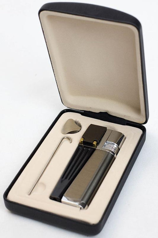 View full detailsMouth piece folds neatly and secures stash. (Removable) 2 Stainless steel bowl screens (included). Cigarette flame (Adjustable) Large butane tank ...