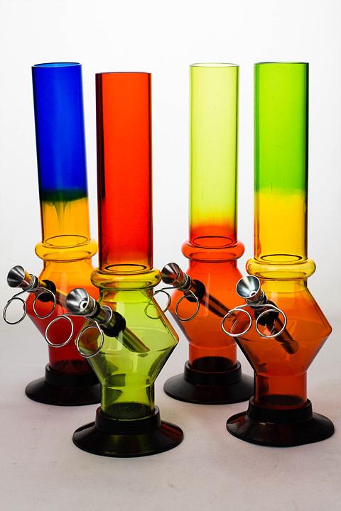 Soft glass is usually solid colors or a variety of colors and is cheaper in quality and cost. Soft glass bongs are great for anyone shopping on a b...