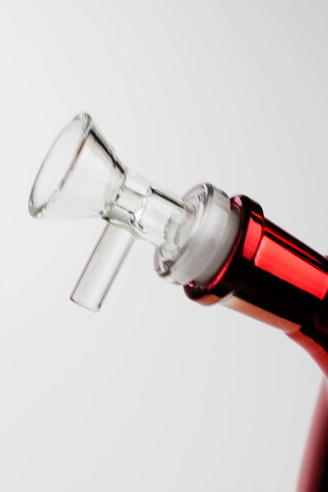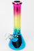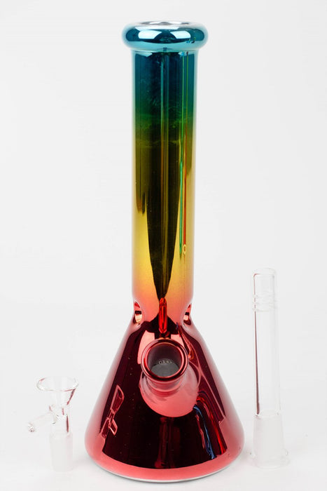 Only 10 inches high, this Metallic finish color gradation glass water bong hits hard. Don't let the size fool you. It smokes as nicely as it fits in the hand. Comes with nice thick glass bowl and 3 pinched ice catcher. Base holds a nice amount of water. Nice portable bong.