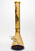 This is simple tow tone color accented classic style beaker metallic glass bong by Genie Glass. Producing 7 mm thickness tubing is very costly to product but it is well worth due to its gorgeous and beautiful looks. It comes with an 14/18 mm slitted diffuser downstem and a 14 mm thick bowl. From there smoke is diffused and cooled in the main chamber. A long 7 mm thick tube keeps water from bubbling up towards the thick, comfortable mouthpiece, and one hole ice catcher will hold a few cubes for even cooler smoke. This water pipe is made of quality borosilicate glass.
