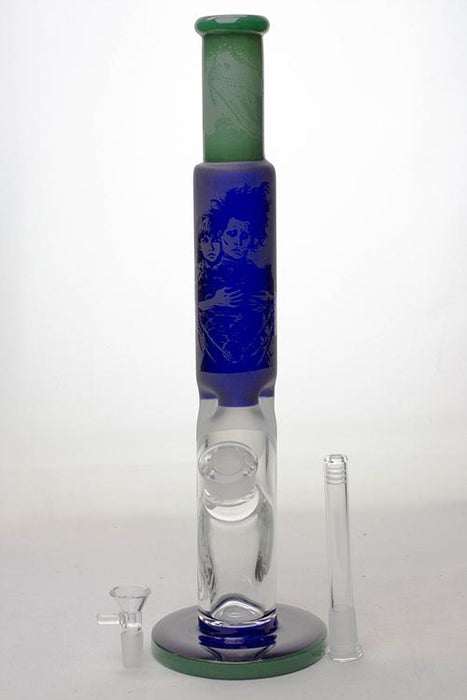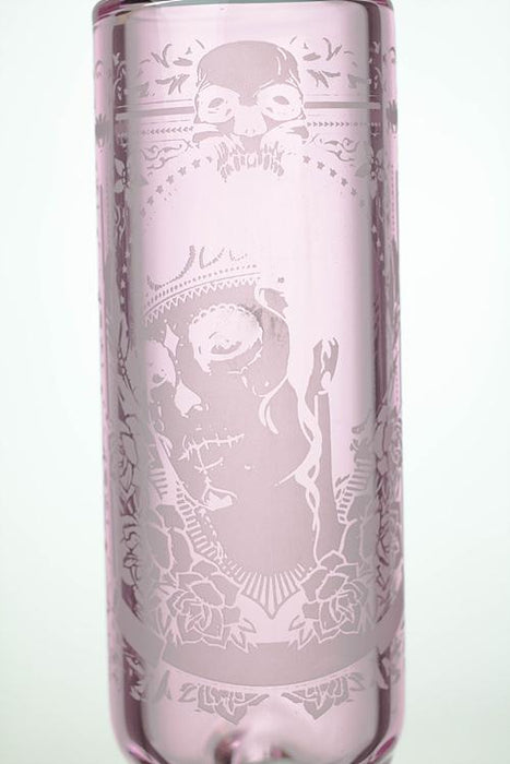 Look at this beauty! We know we have to be professional and all, but for a second, from one bong enthusiast to another, just look at how beautiful this bong is. Putting a sandblasted graphic design on a bong is not new. We have seen a lot of bongs adorned with graphic and if we are being honest most of them looked tacky. It's the design itself which elevates this bong and makes it look so cool. No matter what bong you have,