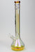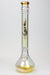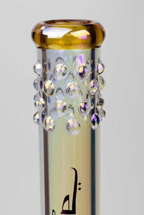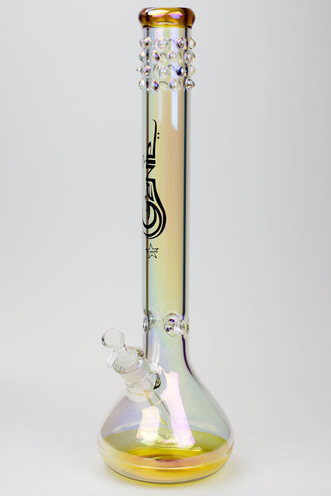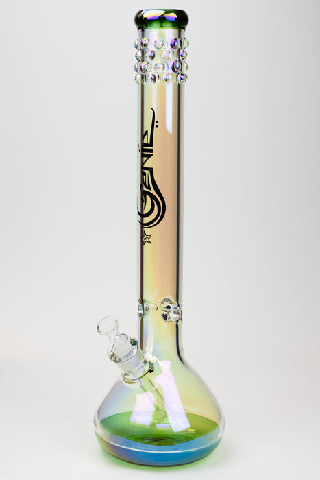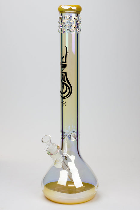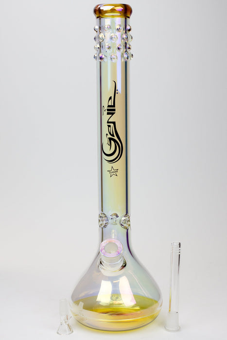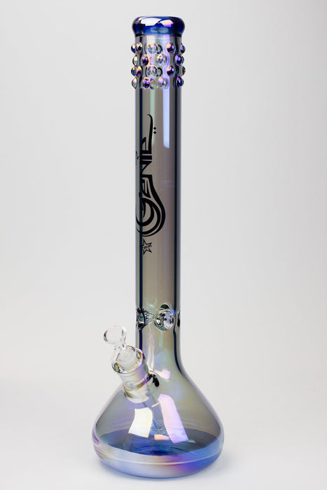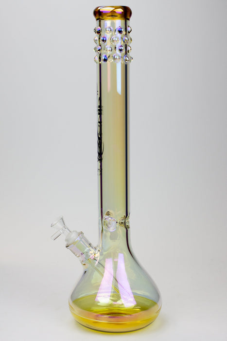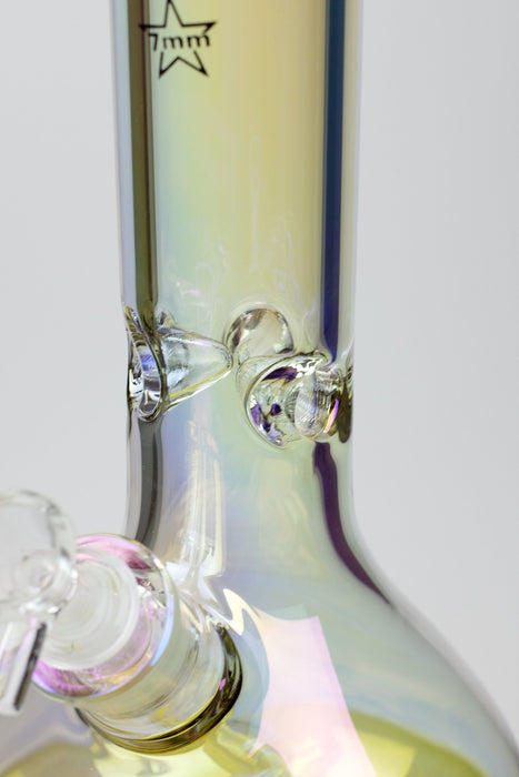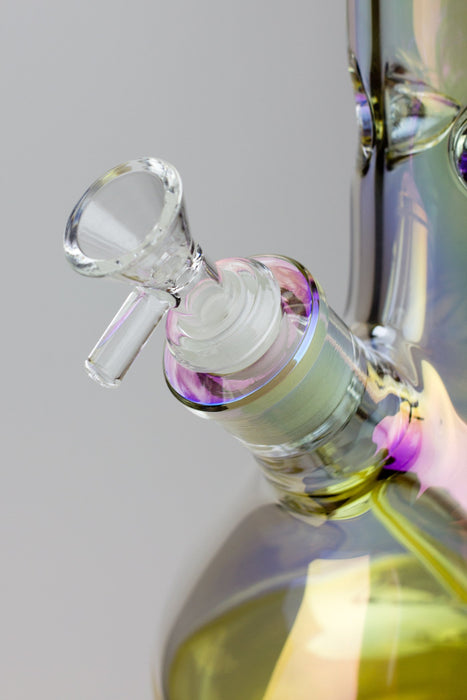 This is beautiful metallic color tinted classic style beaker bong. Producing 7 mm thickness tubing is very costly to product but it is well worth due to its gorgeous and beautiful looks. It comes with an 14/18 mm slitted diffuser downstem and a 14 mm thick bowl. From there smoke is diffused and cooled in the main chamber. A long 7 mm thick tube keeps water from bubbling up towards the thick, comfortable mouthpiece, and 3 pinched ice catcher will hold a few cubes for even cooler smoke. This water pipe is made of quality borosilicate glass.