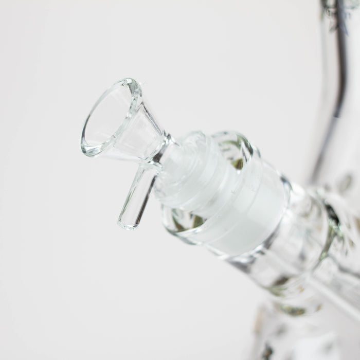 Beautifully crafted from 9 mm extra-thick borosilicate glass, this 20 in luxury patterned bong stands out due to its exceptional clarity, strength, and durability. It features an unusual percolator and ice notches for a cooler smoke. The reinforced bi-stable 18 mm joint is compatible with 14/18 mm down stem attachments, and a roomy 14 mm glazed slide bowl is included.