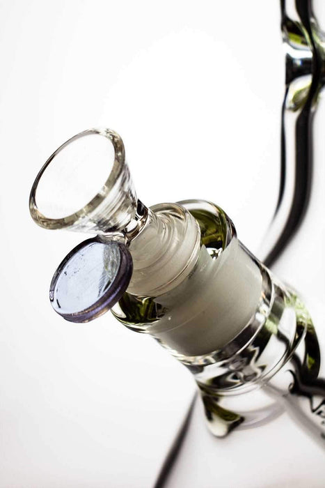 This 22 inches height beaker shaped premium glass bong from Genie Glass is made from the finest 9 mm thick quality borosilicate glass. This provides optimal smoke dispersion. Simple. Elegant. Classy. These are the three words which can be best used to describe the beaker glass bong. Latest in its line of glass bong products for weed smokers, At a huge size of 22 inches in height with a detachable downstem and an ice catcher. Go ahead, what are you waiting for? You won't get a better bong than this, folks!