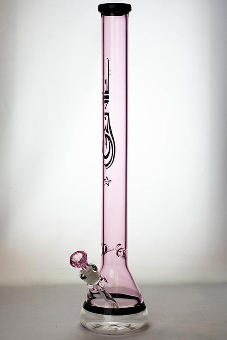 This 24 inches height is simple color accented classic style beauty bong. by Genie Glass. Producing 7 mm thickness tubing is very costly to product but it is well worth due to its gorgeous looks. It comes with an 14/18 mm slitted diffuser downstem and a 14 mm thick bowl. From there smoke is diffused and cooled in the main chamber. A long 7 mm thick tube keeps water from bubbling up towards the thick, comfortable mouthpiece, and ice notches will hold a few cubes for even cooler smoke. This water pipe is made of quality borosilicate glass.