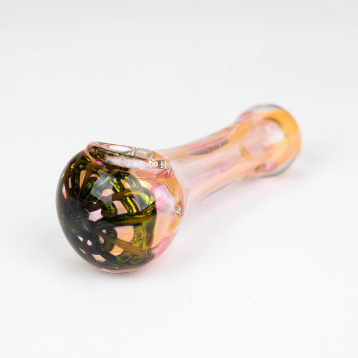 This is a hefty hand pipe with thick walls and a large glass marble to prevent rolling.