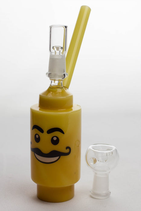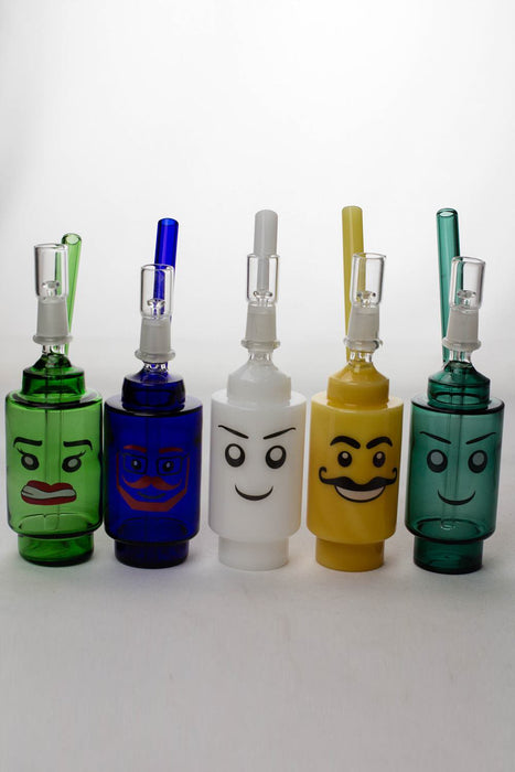 Looking for a bong that proves to the world that you take your buds very seriously? Then the 7" Lego head 2-in-1 glass water bubbler is the perfect choice for you. This bong has the Lego head design but includes. This cost-effective bong includes a fixed diffused down-stem and the base has a thickness of 3.2 mm, however the most profound feature of this bong is the fact that it has a 2-in-1 dome set for both herbs and concentrates! Some of the features of the blue glass water oil rig are mentioned below,