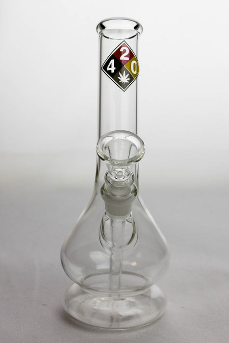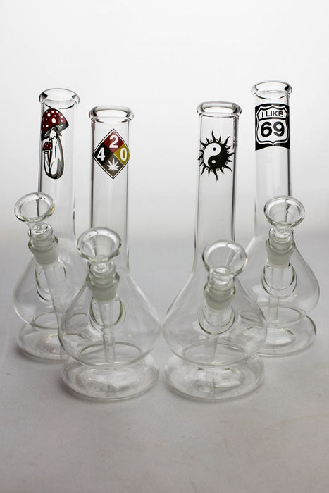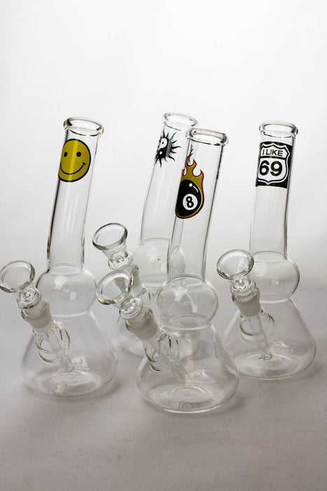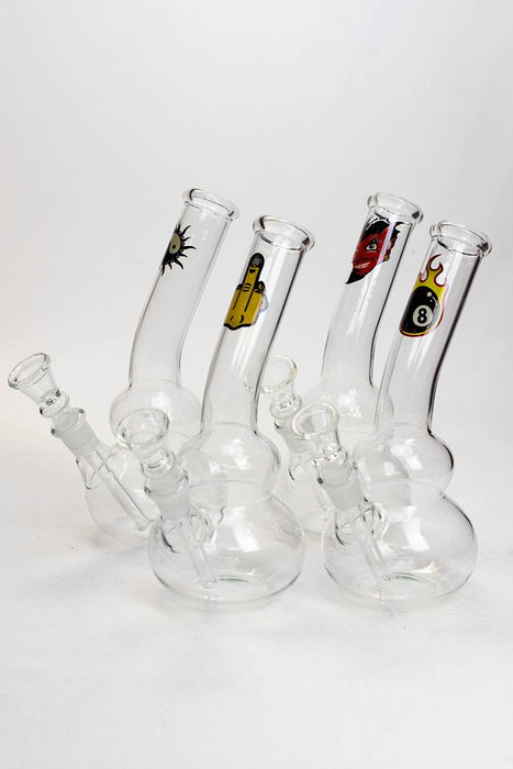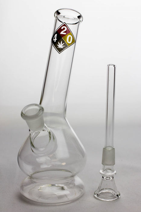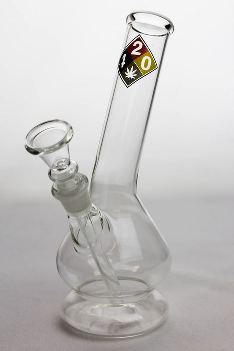 Only 8 inches high, this mini bong hits hard. Don't let the size fool you. It smokes as nicely as it fits in the hand. Comes with nice huge glass bowl stem. The Bowl stem is removable. Base holds a nice amount of water. Nice portable bong.