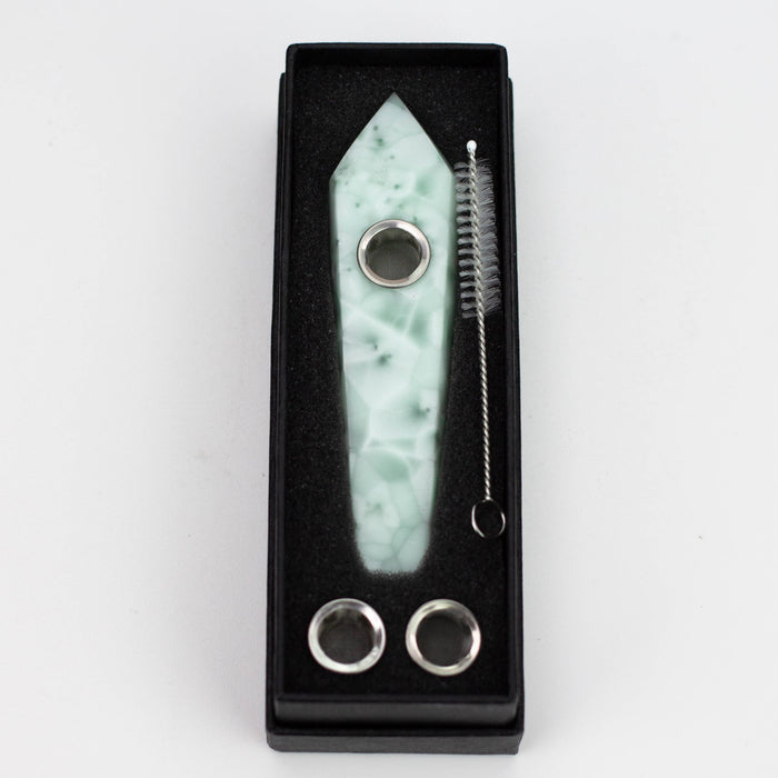 Experience blissful transcendence with this stunning Snow Green Crystal Pipe! Crafted with semi-precious stone, it's strong and simple to clean. Each pipe has a carb hole and superior filter, and quartz pipes are safely washed with the same method as glass pipes.