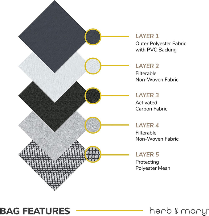 - Professional carbon lining and mesh with PVC coating to lock in odor and freshness.