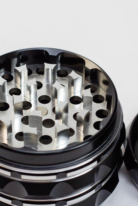 The High Hutch 4 piece aluminum grinder comes with a large catch for maximum flower hold. Our strong magnetic lid reduces spill and keeps your herb secure. Grind up the most dense herb with the sharp teeth that perfectly grinds every bit in minimal twists. The stainless mesh pollen collector grabs all fine powders. Our smooth grip is comfortable and strong for effortless grinding! It comes with a scraper that simplifies collecting and removing the remaining pollen from the grinder. Aircraft anodized aluminum construction for required durability and long lasting use. Made with the highest quality of standards.