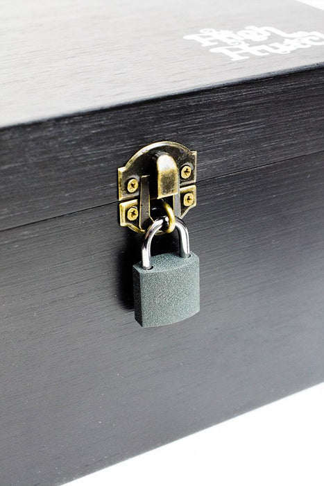 A matte black padlock and keys to finalize the box and keep your stash safe.