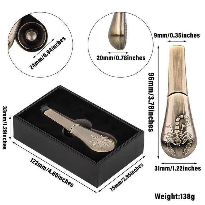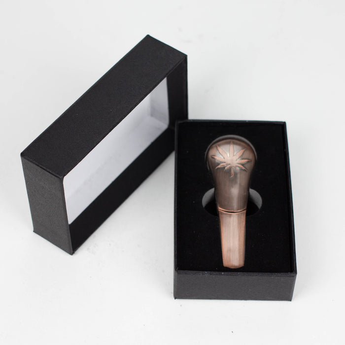 Crafted from durable zinc alloy, this Magnetic Spoon Metal Pipe [YD279] features a stunning iridescent purple and blue finish that stays cool to the touch. The lid, adorned with an stamped Leaf, magnetically secures your stash without the need for screens. Its 200-micron filter gap prevents clogging and eliminates the need for screens, making it easy to clean. Plus, a convenient storage box is included for added convenience.