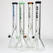 Standing at over 18 inches tall and constructed in 7mm thick borosilicate glass, this bong is a significant piece for your shelf. It comes equipped with a single elbow ice-pinch, herb bowl, and slitted downstem. Available in a range of colourss.