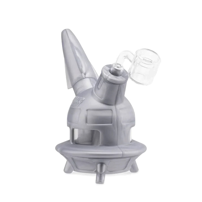 Made of strong borosilicate glass and food-grade silicone, the UFO is a beast. Extremely sturdy, it has four different functions expertly packed into a relatively compact, futuristic device. The landing gear keeps it propped up evenly on the table, with a glass chamber tucked inside to ensure you can still taste your terpenes and not the silicone.