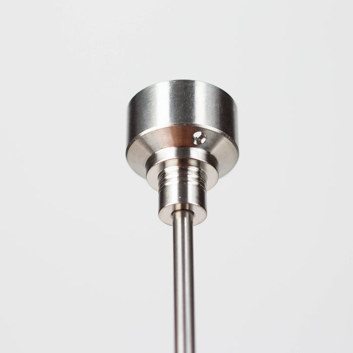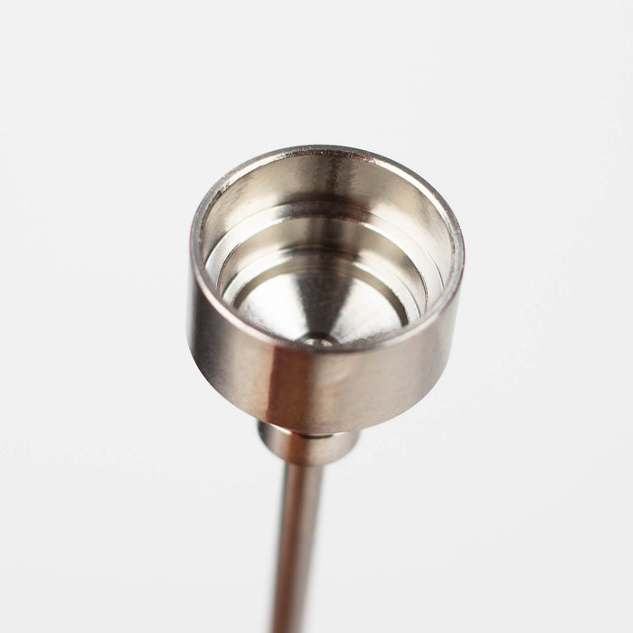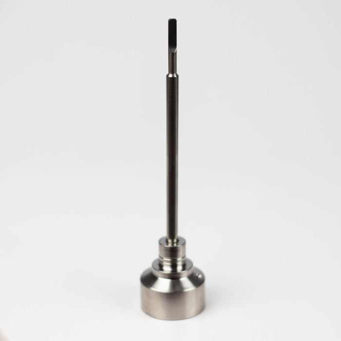 Behold the magnificence of the Titanium cap accompanied by a dab tool and singular hole. As its name implies, this exquisite tool is crafted from grade 2 titanium. We adore titanium for two reasons: its sleek appearance and superior durability. Its steadfastness is evident in its weight and feel, ensuring longevity for this remarkable piece..
