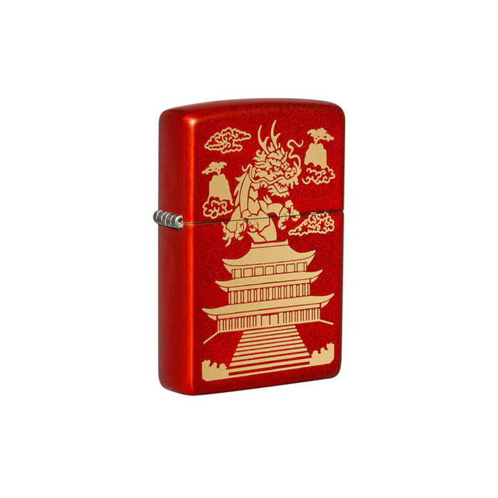 In Chinese culture, the dragon represents good luck, strength, and health. This laser engraved eastern-inspired design features a dragon towering over an ancient Chinese temple. Comes packaged in a gift box. For optimal performance fill with Zippo lighter fuel.